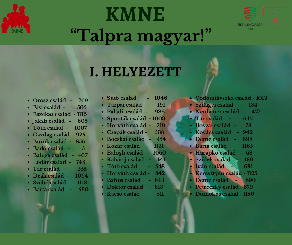 Az alábbi képeken olvashatóak az eredmények, a családok nevei mellet a tagsági kód is fel van tűntetve!